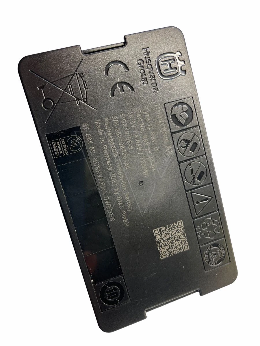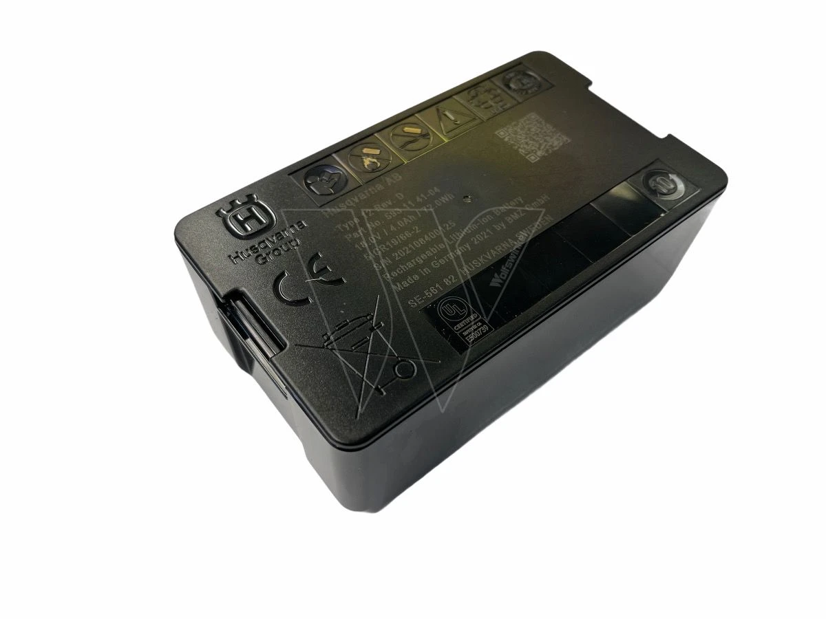 De Originele batterij is speciaal aangepast om interferentie met de lus sensoren te minimaliseren en heeft een extra overlaad beveiliging. Alleen de originele Husqvarna Group accu mag worden gebruikt.